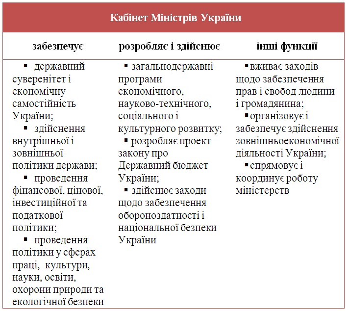 Загальні основи компетенції та функції Кабінету Міністрів України викладені у ст. 116 Конституції України.